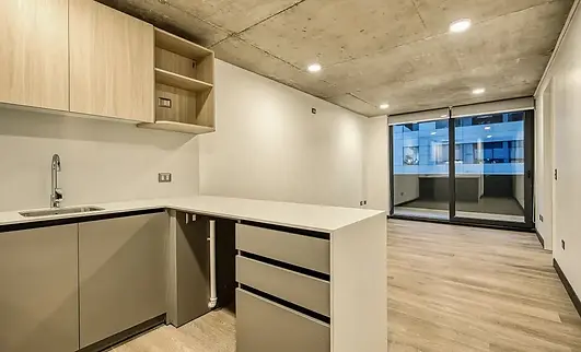 Su cocina americana se conecta al living comedor amplio, que garantiza una excelente iluminación durante el día. La característica principal es la terraza de gran superficie, un espacio ideal para tu parrilla y reuniones sociales.